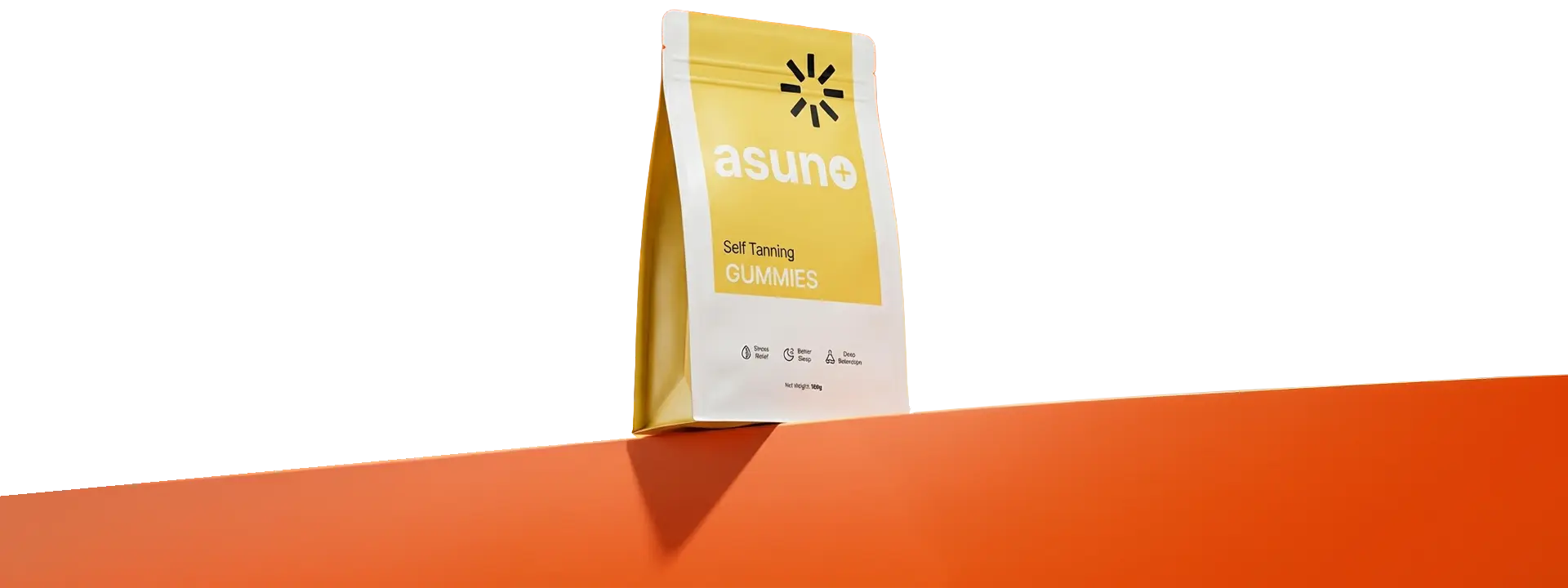 Experience world's first tanning gummy. It contains beta-carotene, the same substance found in carrots, that naturally make your skin's pigment darker. No more streaks, expensive creams, or overseas holidays. Just two gummies per day, and you'll shine like the star that you are.
